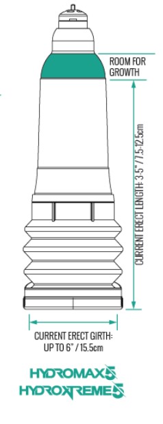 Bathmate Hydroktreme 5 – Clear je dizajniran da bude savršene veličine za muškarce sa veličinom penisa u erekciji između 8-13cm. Dimenzije artikla se nalaze na jednoj od slika.