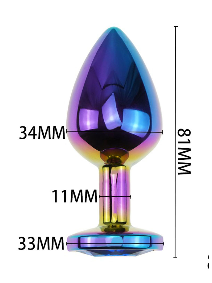 Metalni analni plug je dizajniran da bude idealan za početnike zbog svog konusnog oblika koji će ostati na mestu u svim situacijama. Napravljen je od visokokvalitetnog materijala, dok je njegovo dno dizajnirano da ima providni cirkon. Za lakšu upotrebu, preporučujemo upotrebu lubrikanta na bazi vode koji možete pronaći u našoj prodavnici. Nakon upotrebe, samo ga operite toplom vodom i sapunom. Ukupna dužina: 8 cm  Penetrirajuća dužina: 6 cm  Ukupan prečnik: 3,4 cm