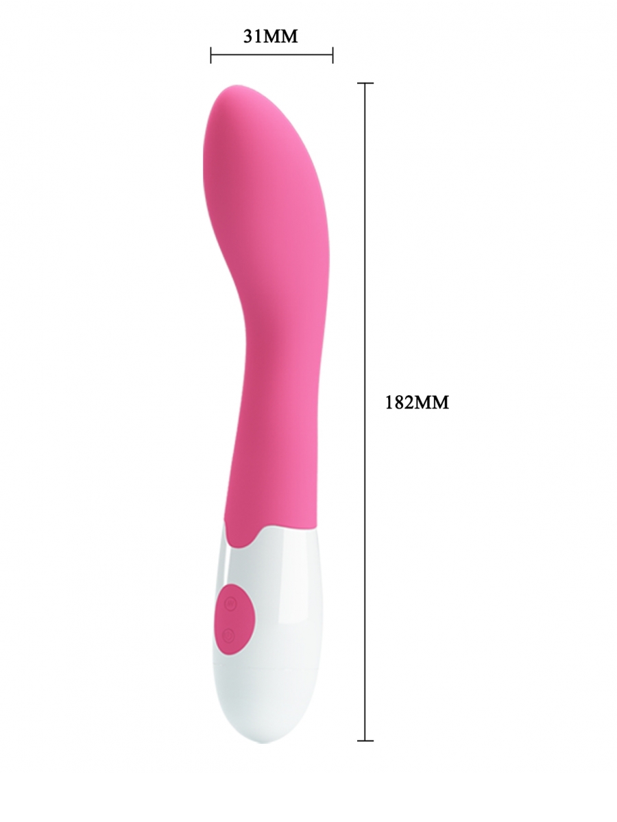 Pretty Love Bishop silikonski vibrator sa 30 modova vibracije. Ovaj vibrator je napravljen od 100% silikona.Luksuznog i modernog dizajna,Bishop vibrator je odličan i za stimulaciju ženske G-tačke. Vibrator koristi dve AAA baterije od 1,5V.